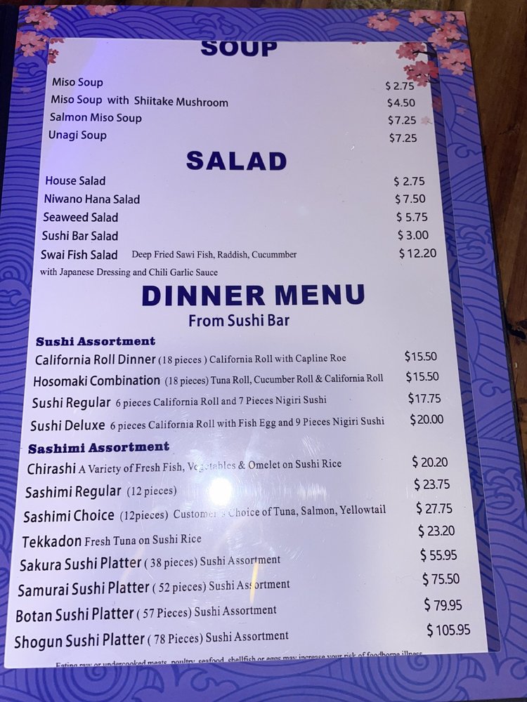 Niwano Hana, a Japanese sushi bar located at 887 Rockville Pike in Rockville, MD, offers a delightful dining experience with a range of amenities including reservations, takeout, vegan options, and more. Customers rave about the fresh and authentic dishes, with favorites like the Bento Box and red bean mochi. The atmosphere is welcoming, the staff friendly, and the service quick. The extensive menu features unique and delicious options like the toro special and agedashi tofu. Whether you're a sushi lover or looking to try something new, Niwano Hana is a must-visit spot for a great meal with gracious service. Don't miss out on the opportunity to enjoy their generous portions, reasonable prices, and relaxing ambiance.